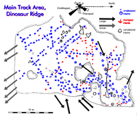 Trace fossils can be subtle or obvious. Burrowing animals can leave tunnels and disrupt layers of sediment. Animals that walk can leave footprints. Organisms without hard parts, such as jellyfish, can leave impressions, much like footprints. Dinotracks at Dinosaur Ridge, in Morrison, Colorado |