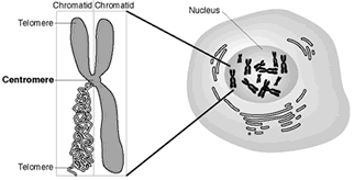 During S phase of the cell cycle, each chromosome replicates. The replicated chromosomes (sometimes known as chromatids), remain attached to one another at a region known as the centromere. |