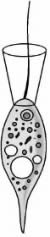 Choanoflagellates have cells that are characterized by a single flagellum surrounded by a distinctive collar structure. Choanoflagellates exist in both unicellular and simple colonial forms. The collar cells are located on the periphery of the cellular aggregate, while amoeboid cells are located in the interior. |