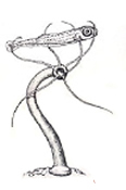 Stinging cells, nematocysts, are located in the "arms". Triggered by touch, they explode outward, embedding themselves in prey and delivering a paralyzing poison. Hydrozoans are complex enough to be true predators. |