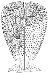 The hydrozoa contain more distinct cell types than the porifera. The most dramatic difference is their ability to produce coordinated organismic movement. While sponges are like sieves, the hydrozoa have a single distinct mouth and an internal stomach-like cavity, specialized to digest prey. Their mouth also serves as their anus, through which wastes are released. |