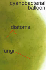 behavior will be altered by their environment. ← Here is a micrograph of a community composed of bacteria, diatoms and fungi. The bacteria form a matrix in which the other organisms are embedded. |